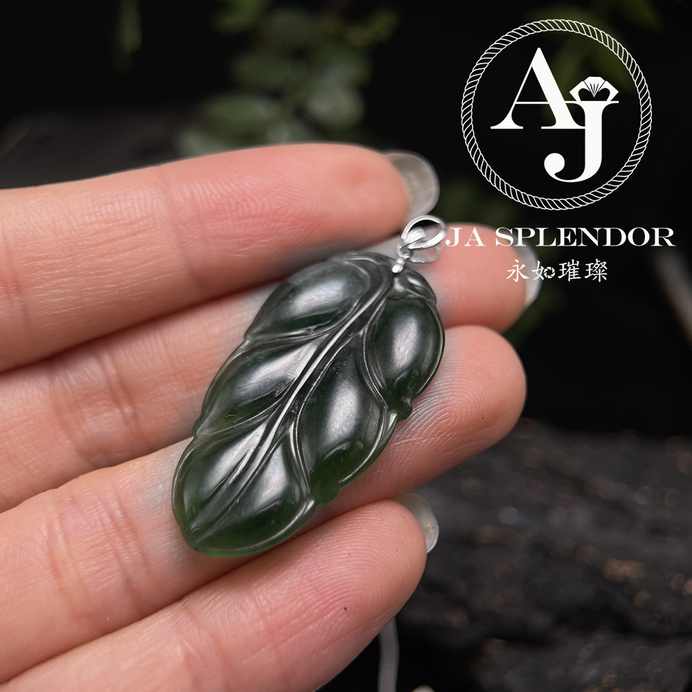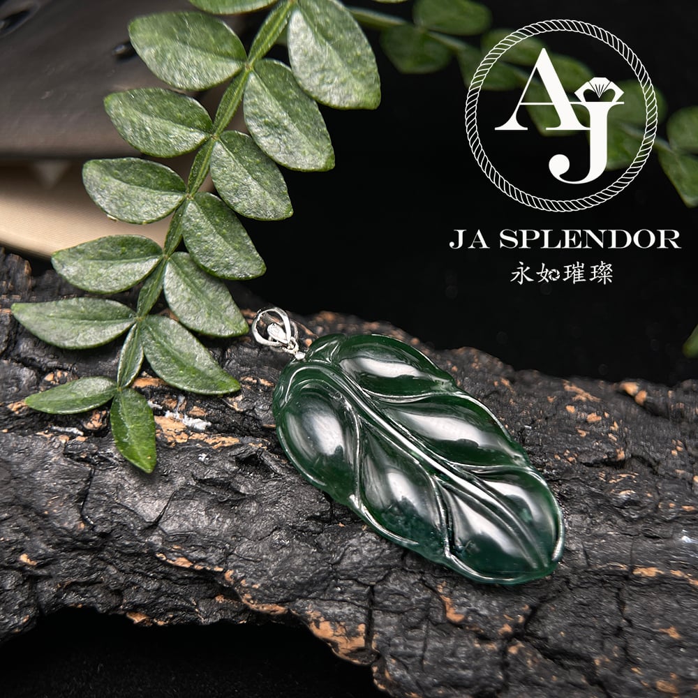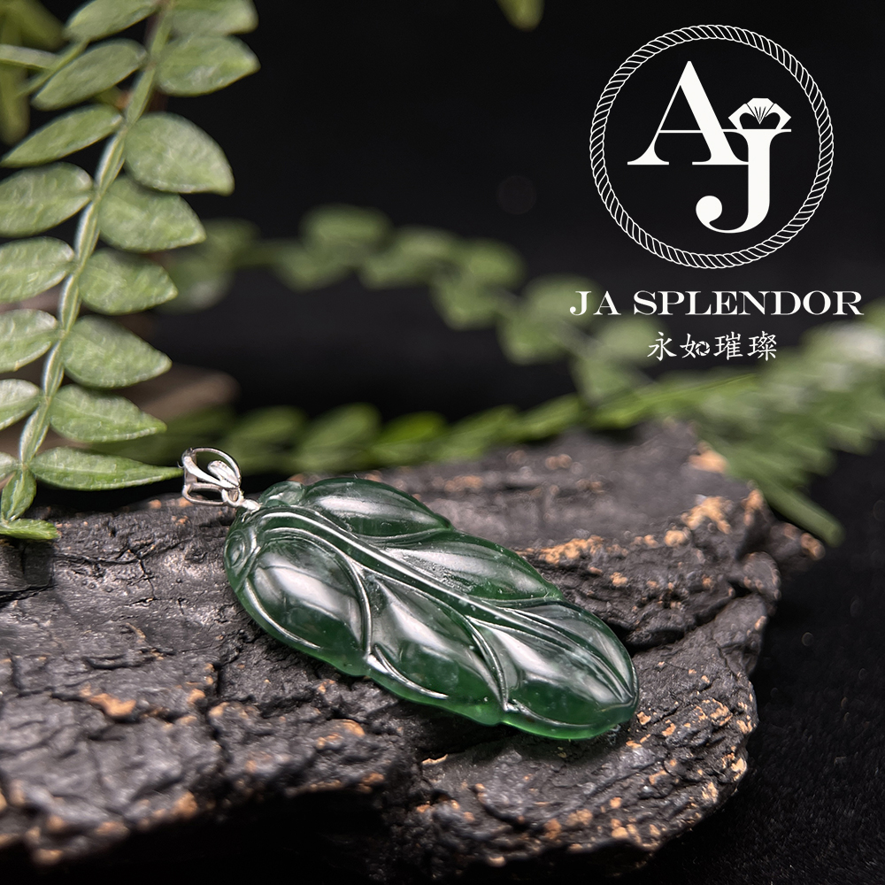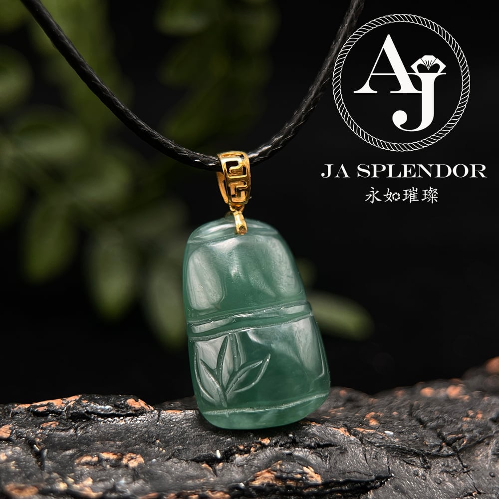 JNK-121 天然翡翠A玉 冰潤老藍水竹報平安18K金吊墜