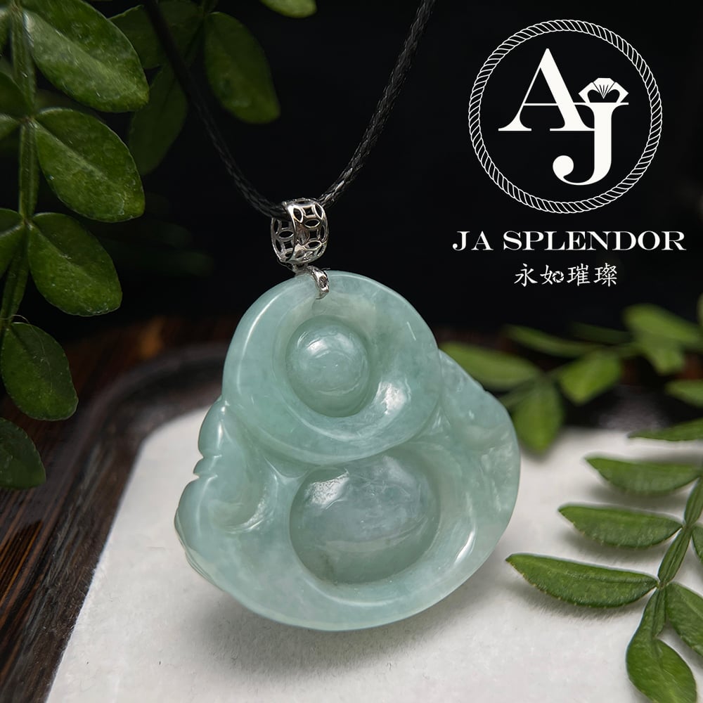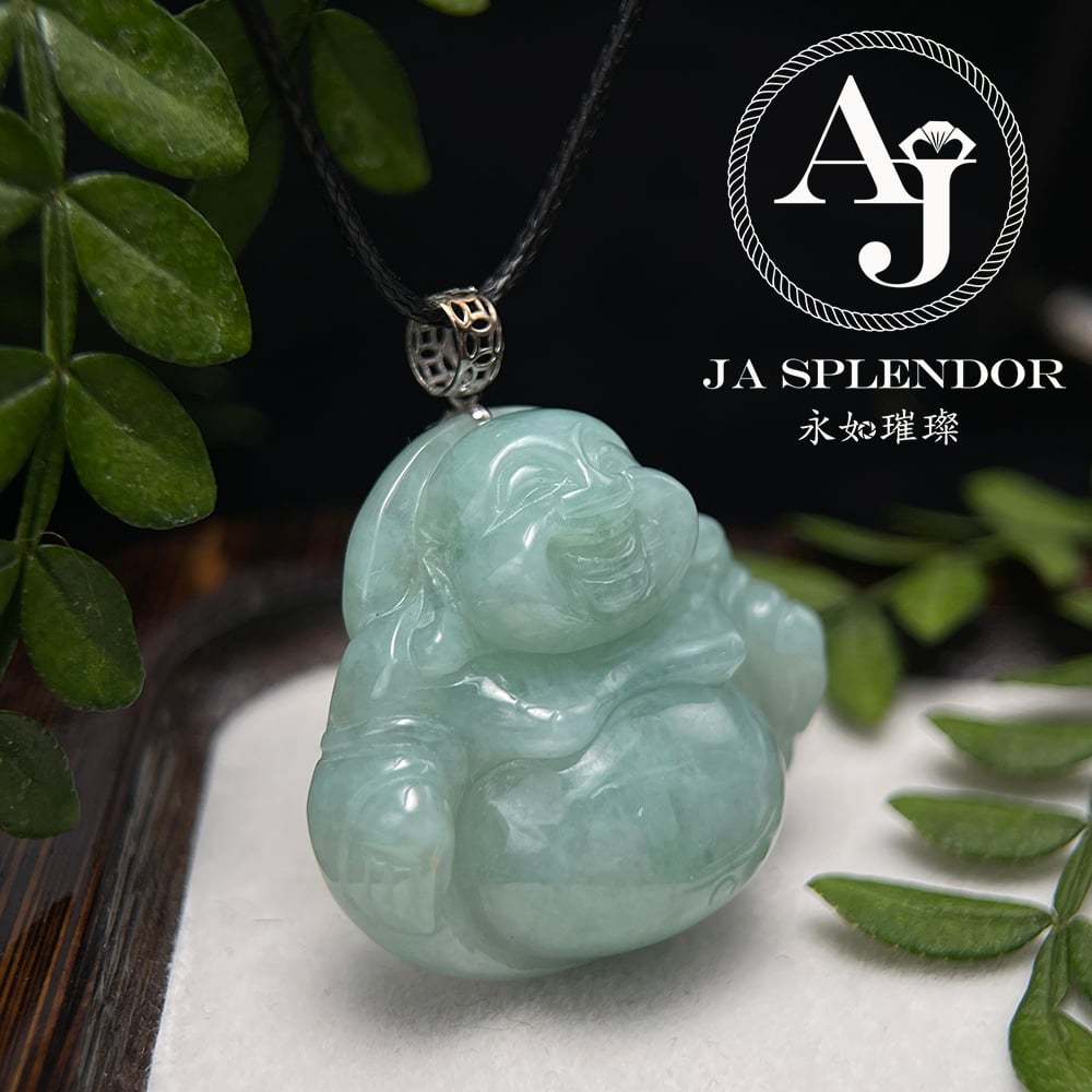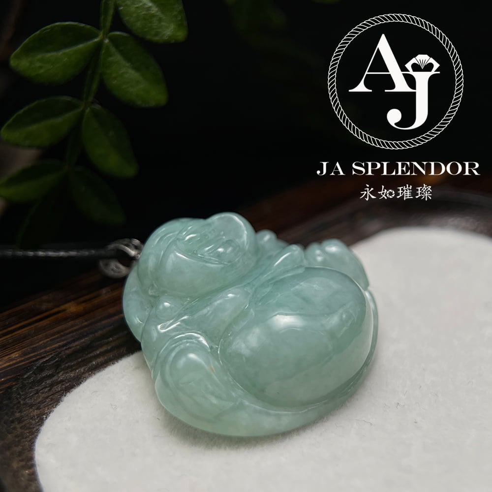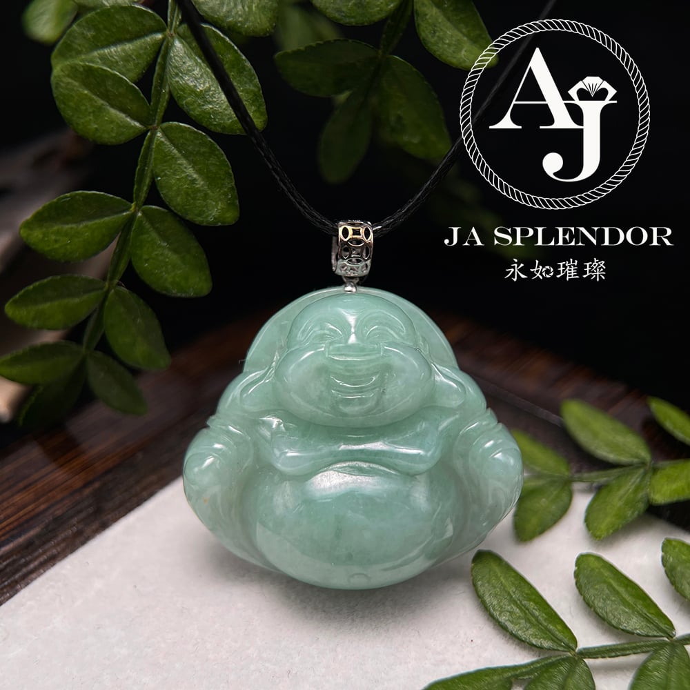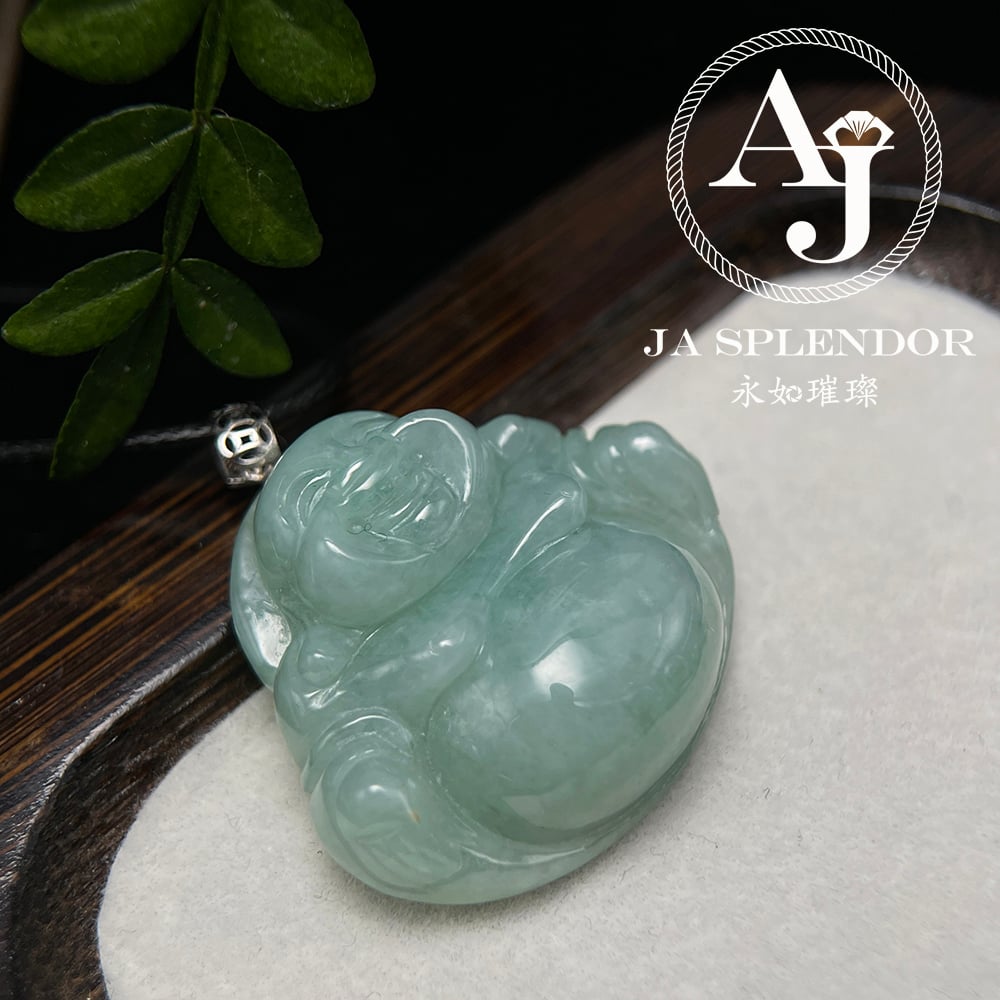 JNK-205 天然翡翠A玉 糯冰果綠笑口常開大肚佛公